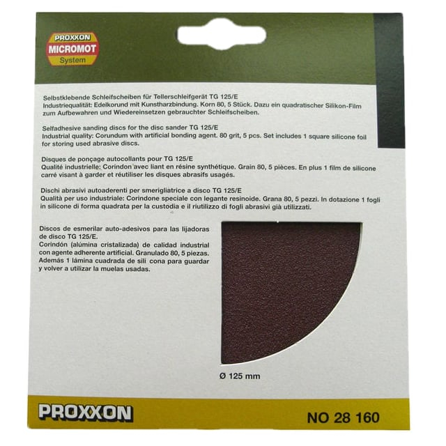 Set discuri abrazive autoadezive pentru TG 125 E Proxxon PRXN28160, O125 mm, granulatie 80, 5 bucati