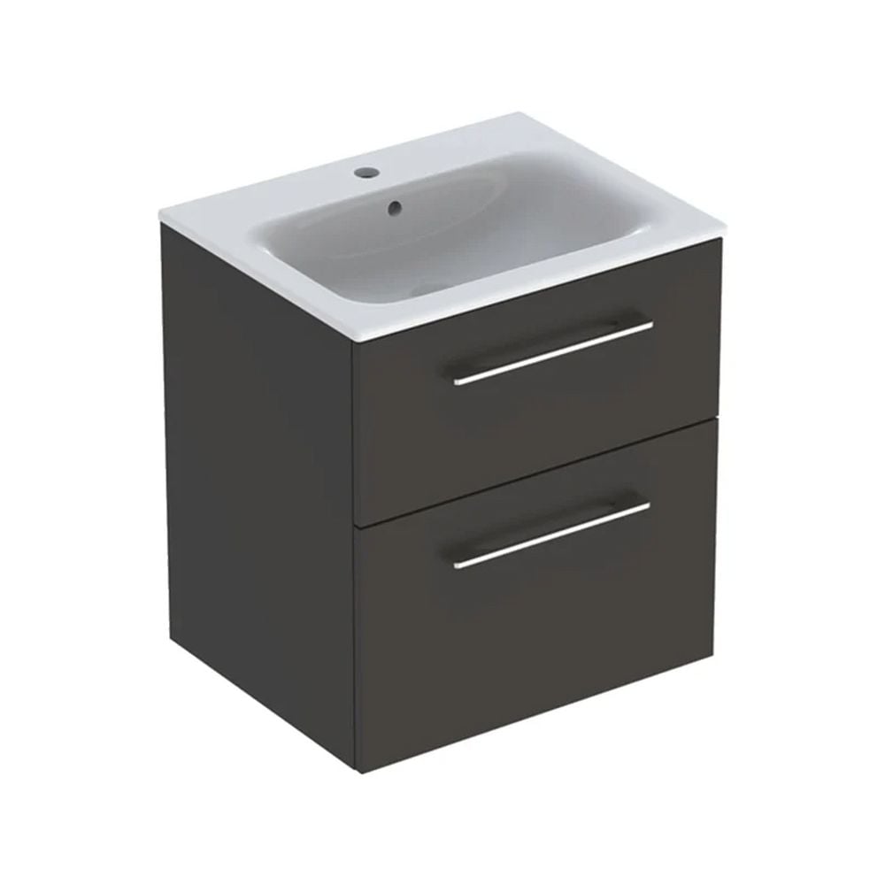 Set dulap baie cu lavoar incastrat Geberit Selnova Square, 60 cm, gri inchis mat