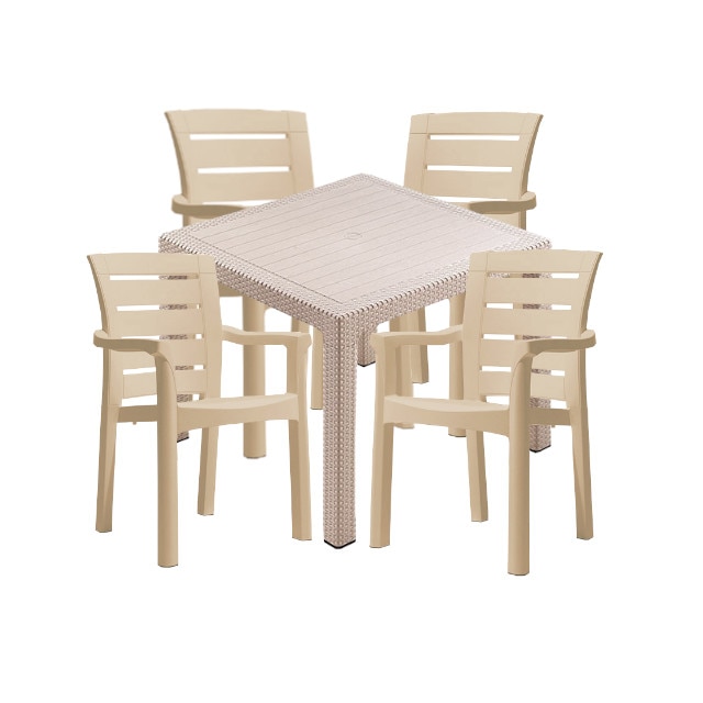 Set gradina CULINARO PALMSE imitatie ratan, masa patrata 90x90x75cm, 4 scaune D60xH90xW57xSH45cm polipropilena/fibra sticla culoare cappuccino