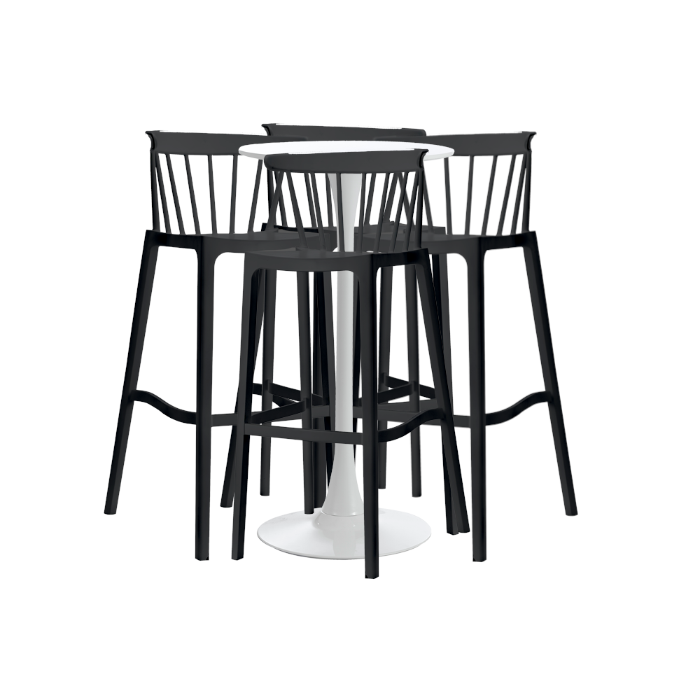 Set masa si scaune de bar RAKI ASPEN, 5 piese, masa alba 60x101cm cu 4 scaune negre 51x54x103cm Setul contine: – 1 x masa 60x101cm – 4 x scaune negre 51x54x103cm