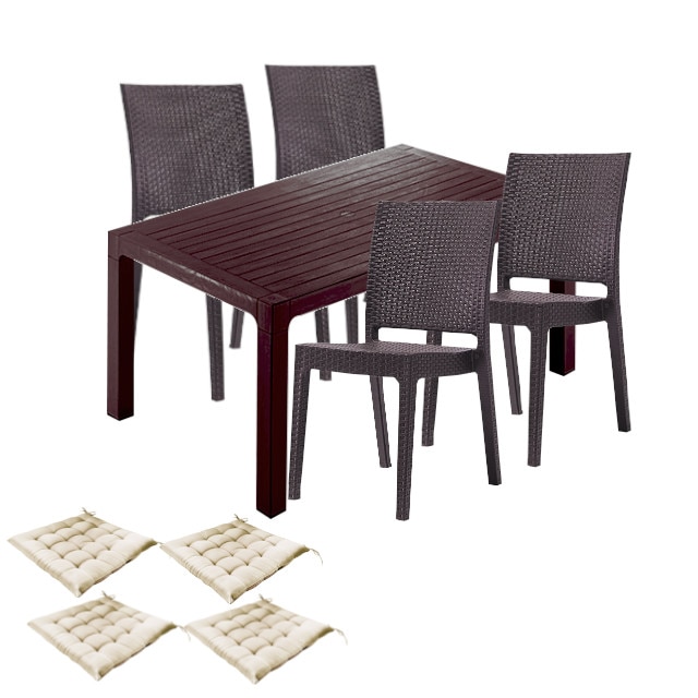 Set mobila terasa CULINARO LIHULU, masa 90x150x75cm, 4 scaune 59x44xH88cm polipropilena/fibra sticla maro, 4 perne scaun