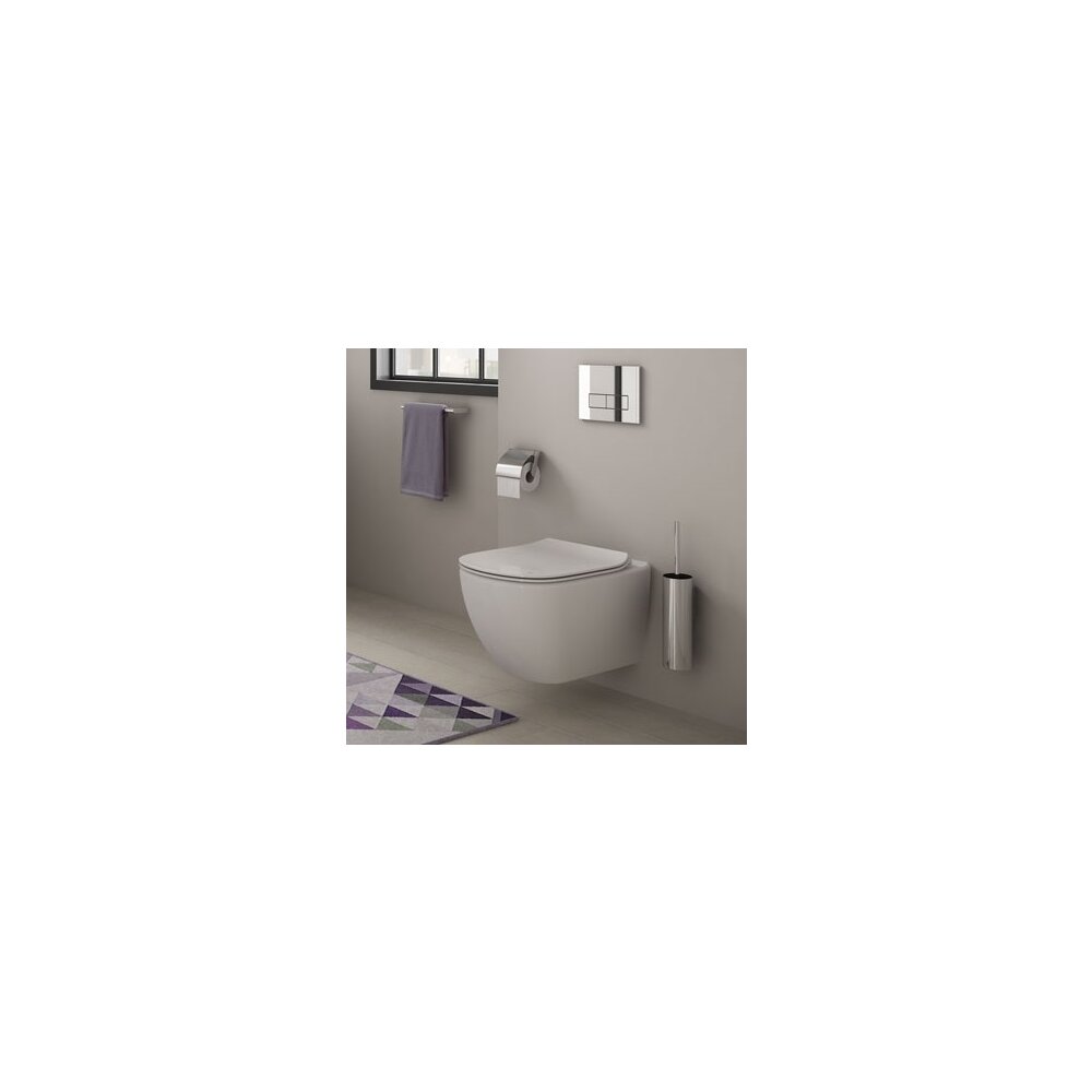 Set vas de toaleta suspendat cu functie Aquablade, capac subtire cu inchidere lenta. Vasul Tesi AquaBlade suspendat cu capac softclose slim, impreuna cu bideul Tesi alcatuiesc un set foarte modern care imprima un caracter deosebit si original oricarei bai. Prin liniile rotunde si subtile setul Tesi de la compania germana Ideal Standard, face din orice baie un loc calduros si extrem de primitor pentru orice utilizator. Tesi este o noua suita contemporana care ofera un stil geometric si o solutie completa de baie. Vasele de toaleta Tesi beneficiaza de tehnologia inovatoare AquaBlade care ofera cea mai buna estetica, performanta si igiena de pe piata. Accesibilitatea ridicata si versatilitatea oferite de gama Tesi de la Ideal Standard ofera solutii complete pentru orice amenajare interioara. Liniile sale geometrice fine si tehnologia inovatoare AquaBlade transforma baia într-un spatiu modern si placut. Gama Tesi inspira calitate, stil si versatilitate in egala masura. Caracterizate de linii geometrice clare, contrabalansate de linii delicate si forme rotunde, complimenteaza perfect calitatile stilistice ale ceramicii din aceeasi gama. Ceramica vaselor Ideal Standard din gama Tesi este de foarte mare calitate fiind turnata in una din cele mai moderne fabrici de obiecte sanitare din lume. Calitatea ceramicii, care are o garantie extinsa de 25 de ani data de producator, impreuna cu pretul rezonabil fac din acest set o alegere simpla si inteleapta pentru oricine care isi doreste sa aiba o baie aerisita si moderna. Setul vas wc cu capac softclose Ideal Standard Tesi Aquablade: 1) Vas de toaleta suspendat Ideal Standard Tesi Aquablade : Functie: Aquablade Tipul de montaj: Suspendat Tipul de scurgere: Orizontala Tipul de material: Portelan Finisaj: Alb Dimensiuni: 365 x 535 mm Pachetul include si kitul pentru montaj Vasul nu este prevazut cu orificii laterale, anexele fiind ascunse. Garantie: 25 de ani 2) Capac de toaleta subtine cu inchidere lenta Ideal Standard Tesi Functie: inchidere lenta Forma : subtire Balamale si sistem de prindere din inox Fabricat din plastic tip duroplast