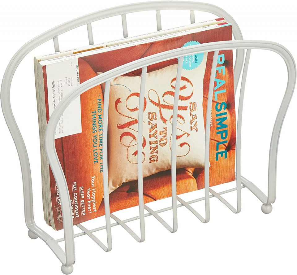 Suport pentru reviste mDesign, metal, alb, 17,8 x 35,6 x 28,6 cm