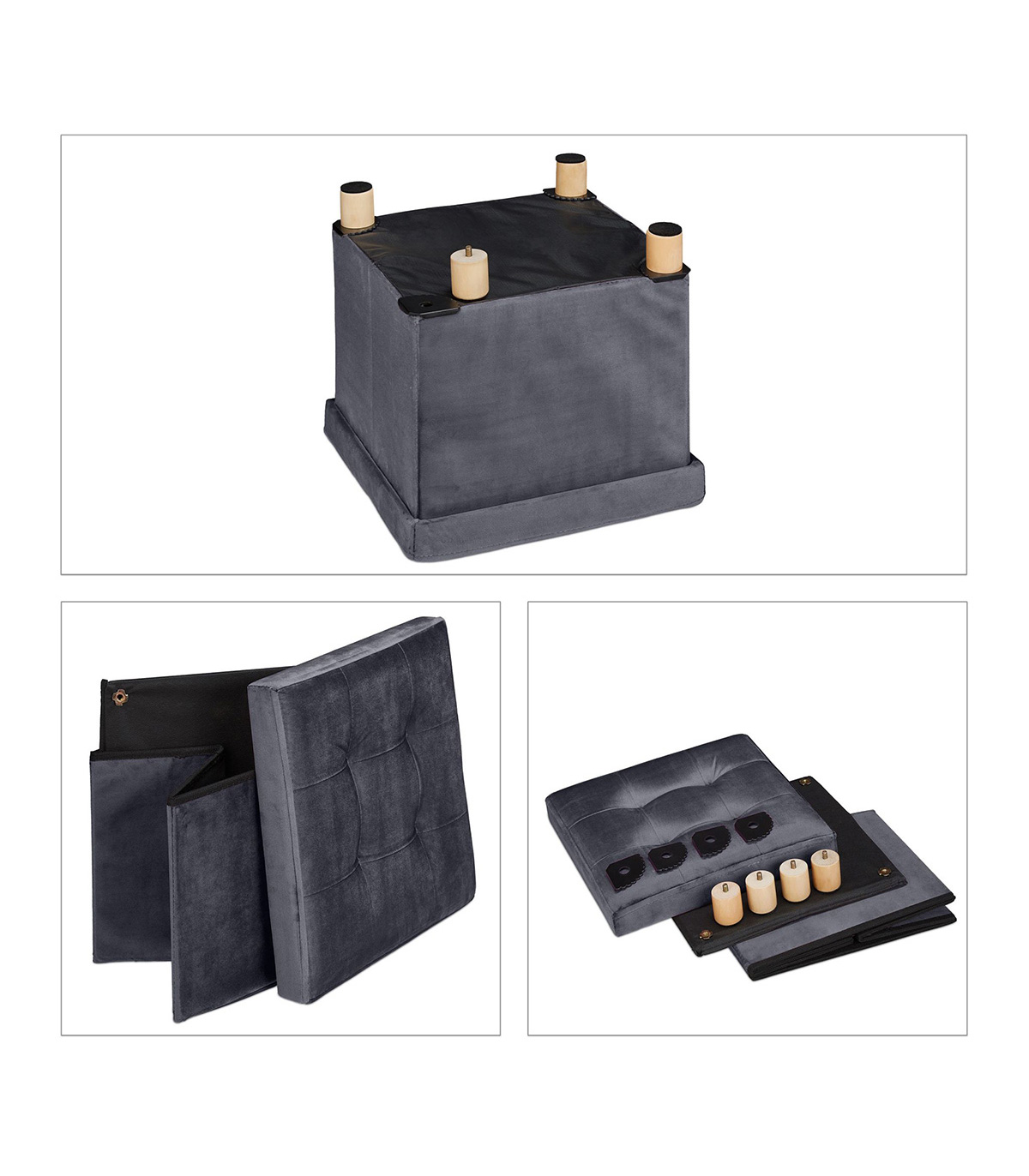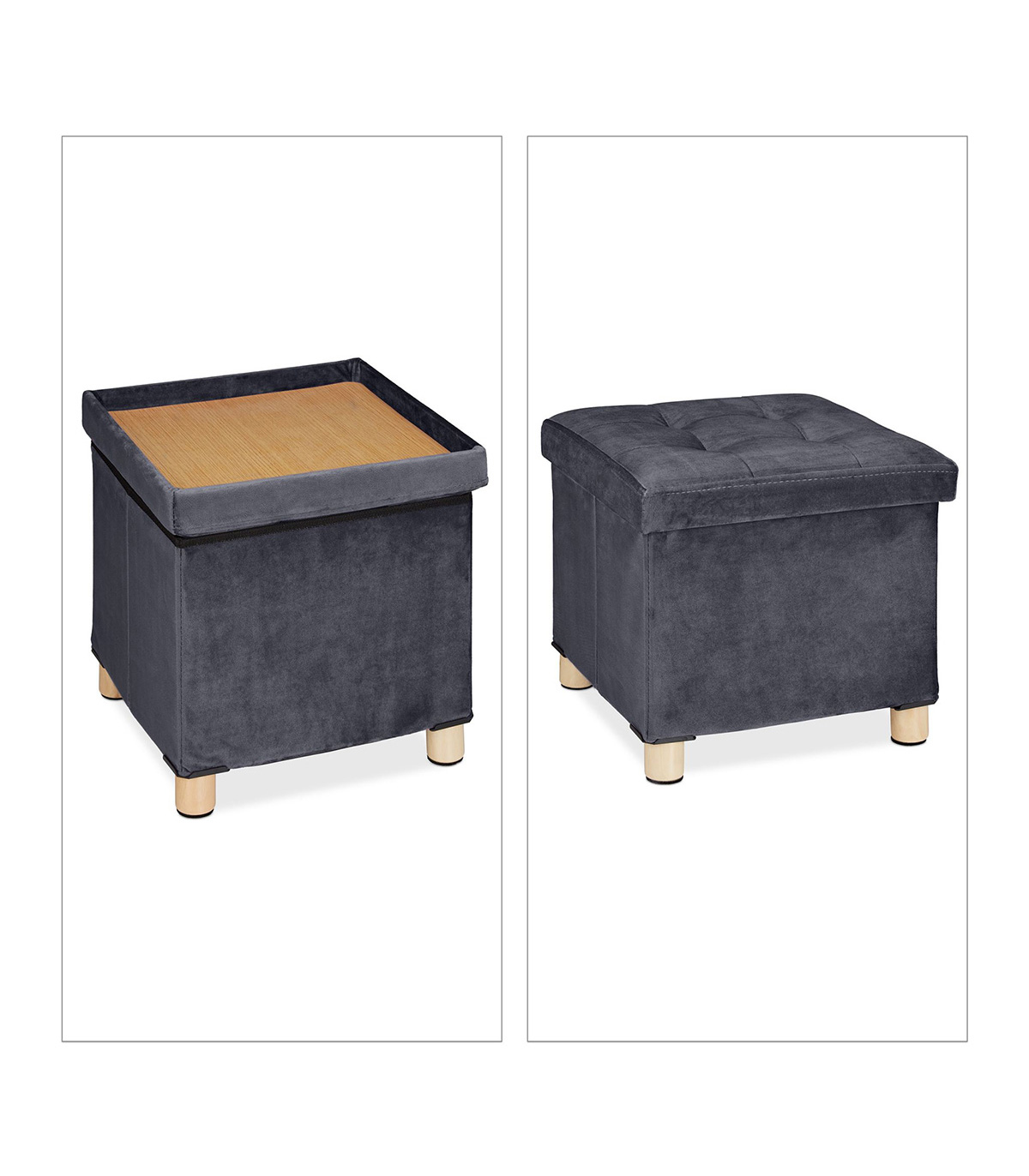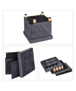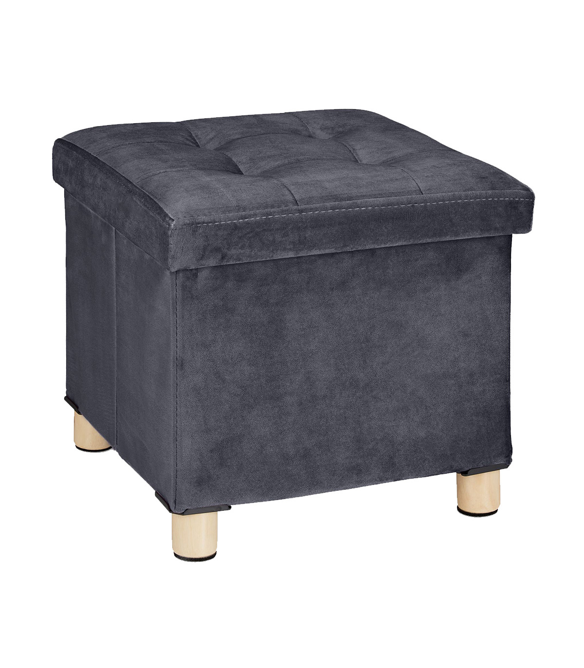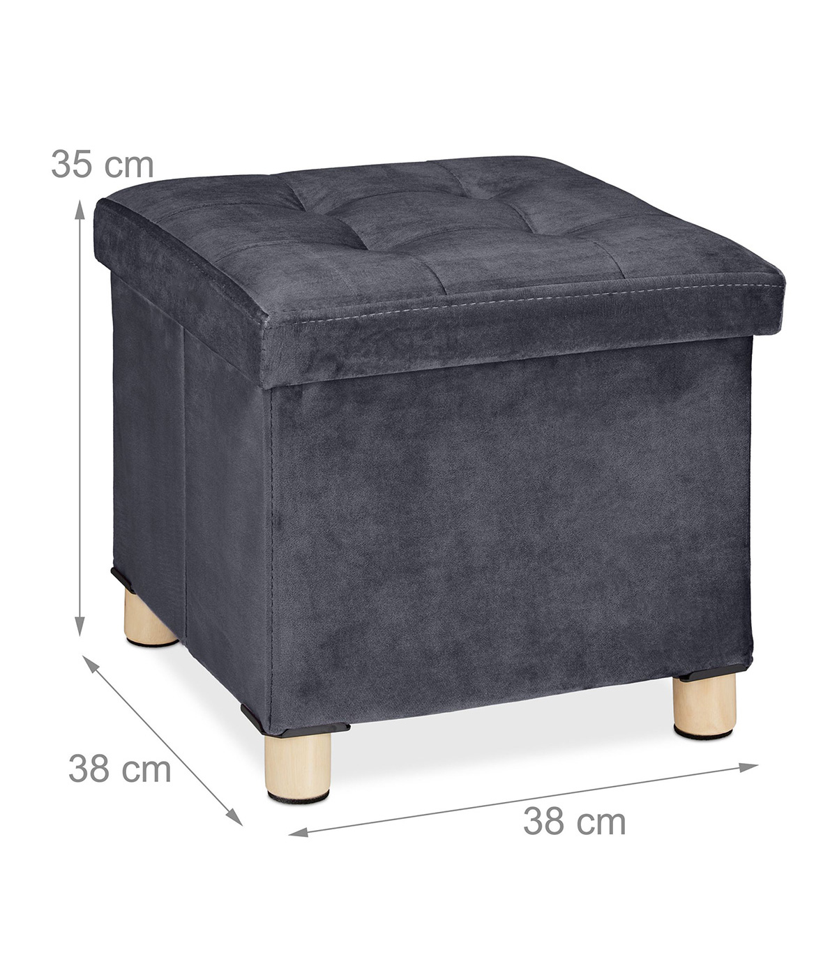 Etichete: 35 x 38 x 38 cm, catifea, Depozitare & Organizare, gri inchis, Max. 80 kg, Picioruse lemn, Taburet cu spatiu depozitare, Taburete depozitare