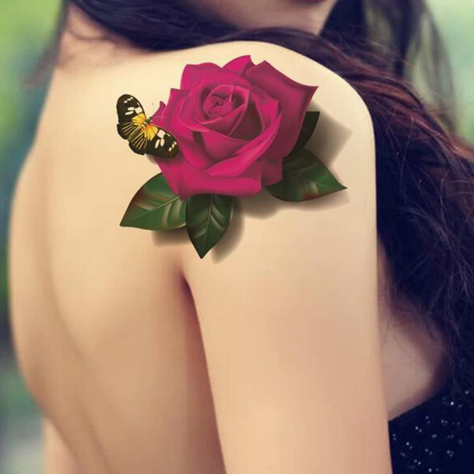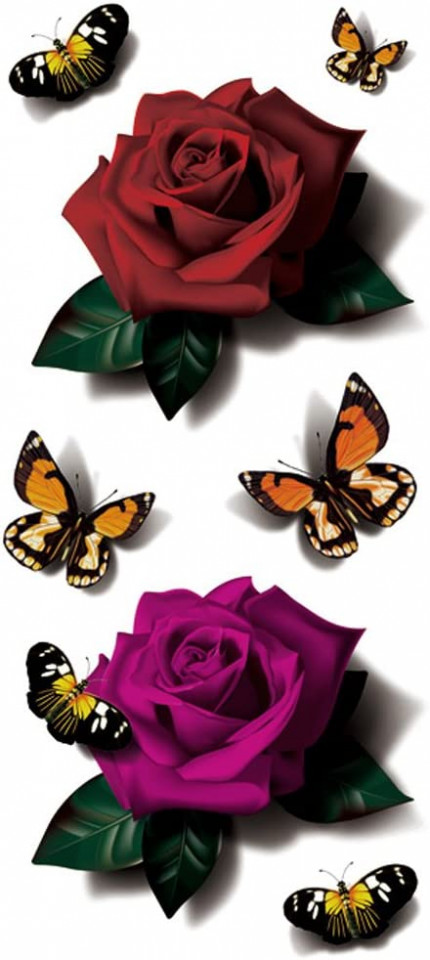 Tatuaj temporar TAFLY, model trandafiri/fluturi, vinil, multicolor