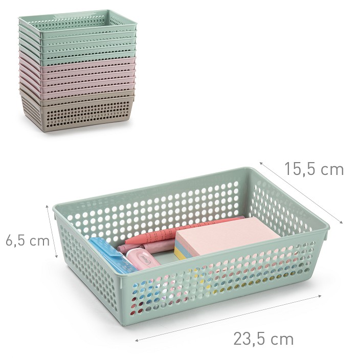 Tavita multifunctionala, colorata, 23,5×15,5×6,5 cm -Surt VRM poate fi folosita ca mijloc de organizare si depozitare zilnica, pentru nevoile dvs. Dimensiuni pentru depozitarea obiectelor de mici dimensiuni, ca: papetarie, produse cosmetice, produse hobby, etc Contur dreptunghiular, cu gauri, asigura o buna ventilatie. Un bun organizator in bucatarie, baie, birou. Dimensiune bună pentru depozitarea obiectelor mici de artizanat, accesorii cosmetice, bijuterii, etc. Te ajuta la sortarea obiectelor si pastrarea ordinii. Material: plastic. Dimensiuni: 23,5 x 15,5 x inaltime 6,5 cm. ********** PRETUL ESTE PENTRU 1 BUCATA Tavita multifunctionala, colorata, 23,5×15,5×6,5 cm -Surt VRM.************** **********Livrarea culorii se face aleatoriu, nu se poate selecta culoarea.**********