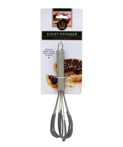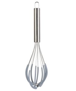 Telul de bucatari are capatul invelit in silicon ceea ce va proteja vasele impotriva zgarieturilor. Siliconul este un material rezistent la actiune mecanica sau la temperaturi ridicate. Material : otel inoxidabil + silicon Dimensiuni : 27 x 7,5 cm Rezistenta la temperatura maxima de + 230ºC PRETUL ESTE PENTRU 1 BUCATA Tel inox de bucatarie cu protectii din silicon.