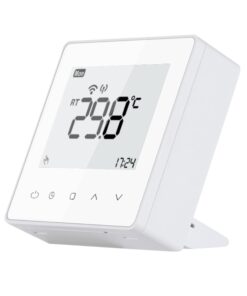 Descarca aplicatia Prezentare Cablare Conectare aplicatie Manual TP608RFW Specificatii: Brand: Luxion Senzor temperatura: NTC Materiale folosite: PC + ABS Control digital touch panel Programare saptamanala 5+1+1 Display LCD mare tip back light Alimentare termostat: 2 baterii tip AA (nu sunt incluse) Alimentare receiver: 95-240VAC 10% 50/60Hz Frecventa RF: 868 MHz Conectivitate termostat: Wi-Fi 2.4 GHz Control termostat: Tactil sau prin aplicatia mobila Smart Life Sarcina maxima: 3A (Incalzire apa, incalzire boiler), 16A (Incalzire electrica) Interval temperatura camera: 5-35C Temperatura ambientala: 0-50C Histereza: 0.5C Dimensiune termostat: 86 x 86 x 28 mm Dimensiune receiver: 86 x 86 x 28 mm Tip instalare termostat: Pe perete/birou Tip instalare receiver: Pe perete Certificate: CE, RoHS Functie memorare: Termostatul memoreaza automat setarile pe care tu le faci! In acest fel acesta va pastra toate setarile savlate chiar si dupa o pana de curent. Functie programare: Termostatul poate fi programat dupa bunul plac. De exemplu in timpul zilei 9:00 – 17:00 temperatura sa fie 22C, iar in intervalul 17:00 9:00 temperatura in casa sa fie 25C! Termostatul este programabil 5+1+1 zile, cu 6 intervale orare pe zi. Blocare termostat: Blocheaza termostatul astfel incat copiii tai sa nu poate umbla la el! Protectie impotriva inghetului: Sistemul anti-inghet al termostatului monitorizeaza constant temperatura din incapere, iar atunci cand aceasta scade sub 10C, termostatul porneste automat sistemul de incalzire pentru a preveni inghetul apei in sistemul de incalzire! Sincronizarea cu receiverul In mod normal nu este nevoie de sincronizare, insa daca din orice motiv este necesar acest lucru, pasii sunt urmatorii: tineti apasat pe butonul de Reset de la receiver timp de 7 secunde pana ledul galben incepe sa clipeasca. Apoi tineti apasat simultan la termostat butonul de pornire si cel cu „ceas”. Imperecherea a reusit iar pe ecran simbolul „antena” a incetat sa mai clipesca.