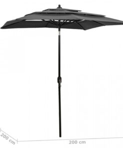 Umbrelă de soare 3 niveluri, stâlp de aluminiu, antracit, 2×2 m