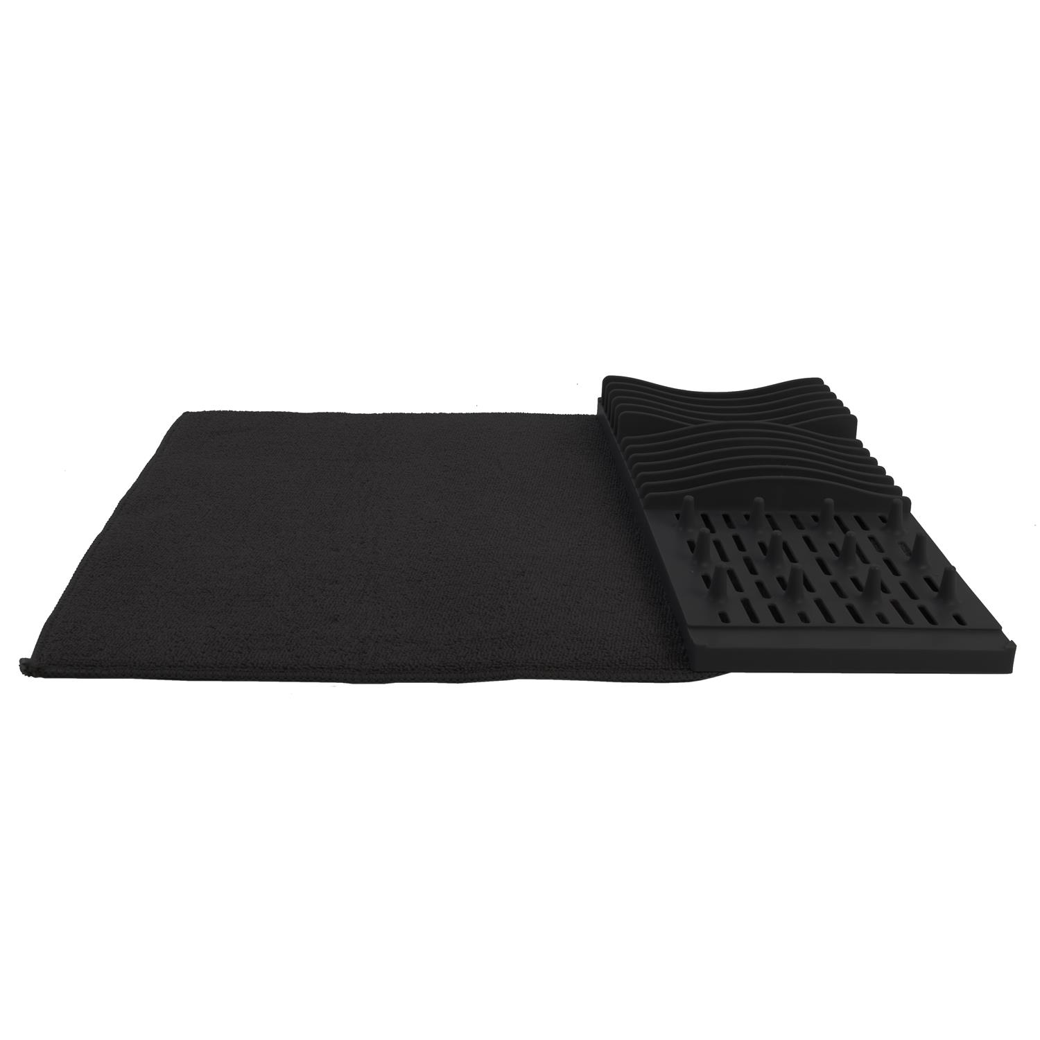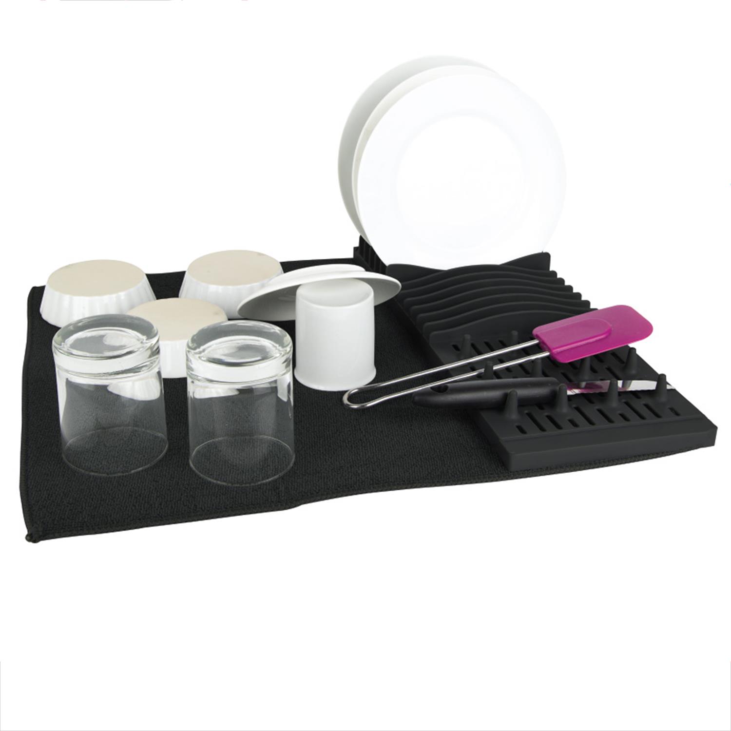Uscator vesela, minimalist, 59,5x45x4 cm este un suport uscare vase, farfurii, cani, pahare, articole sticla, articole servire. Are ca si baza un covoras din microfibra, ce ajuta la prevenirea acumularii mucegaiului. Este un uscator economic, pentru spatii mici. Covorasul din microfibra amortizeaza si previne spargerea vaselor. Suprafata antiderapanta, material flexibil cu închidere elastica, va permite sa pliati si sa depozitati usor, daca nu il mai folositi. Nu este destinat pentru vase mai mari. Pretul este pentru 1 bucata. Culori : negru sau rosu, DAR se livreaza aleatoriu, nu se poate selecta culoarea. Dimensiuni: lungime 59.5 x adancime 45 x inaltime 0.5 cm. Material: plastic-PP.