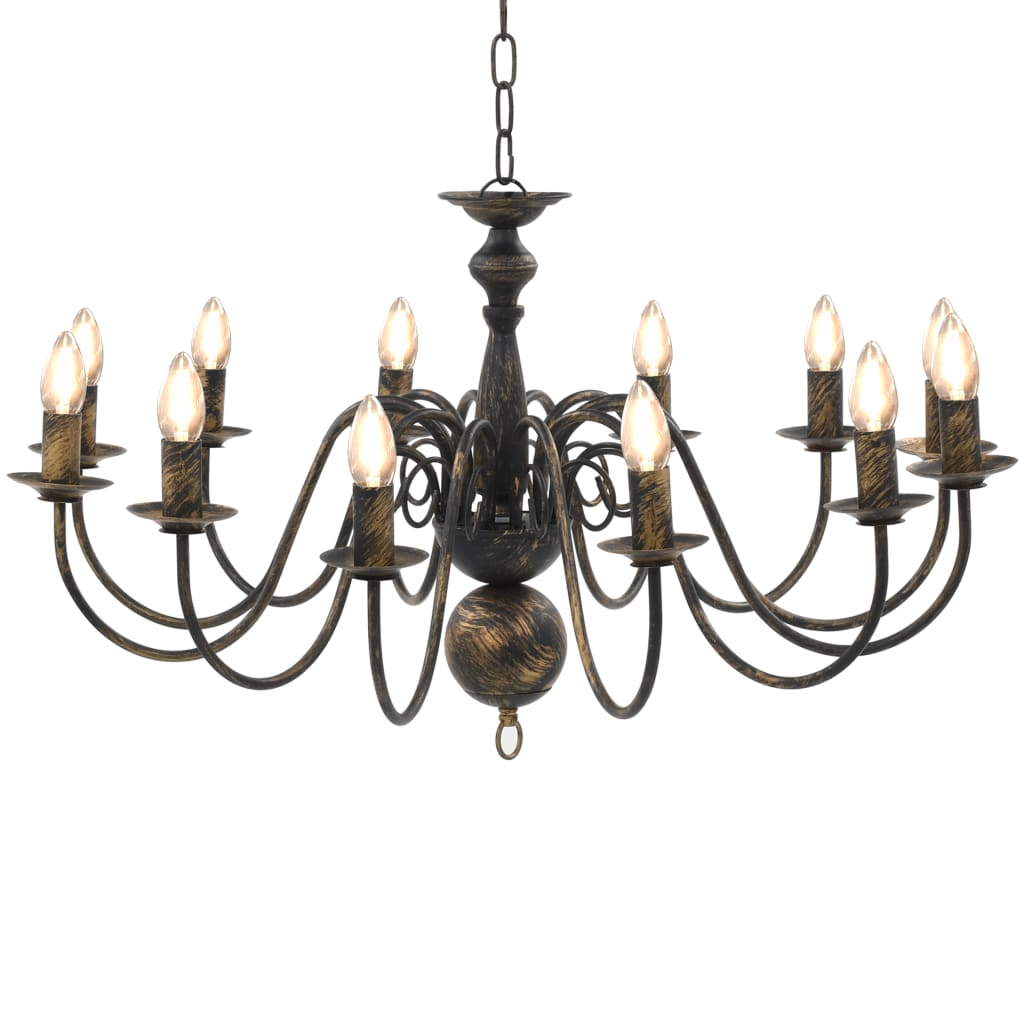 vidaXL Candelabru antichizat, negru, 12 becuri E14