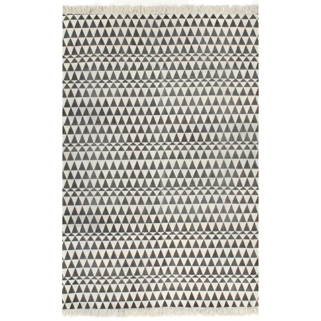 vidaXL Covor Kilim, negru/alb, 160 x 230 cm, bumbac, cu model